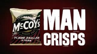 What on earth is that supposed to mean? Real men get twice the flavour? Are they seriously saying that in their factory in Ashby-de-la-Zouch there is a room of ‘once-flavoured’ crisps waiting to be flavoured a second time? If they’re going to lengths like that, the people at McCoy’s should put down the dumbbells and go for ‘Thrice Flavoured’. Why don’t they just say, for example, ‘twice the flavour’? No, because it is not as manly – it is, like the cog, a warning: Women of the World watch out – the amount of flavour in this ‘Ultimate Taste Experience’ will blow your minds…