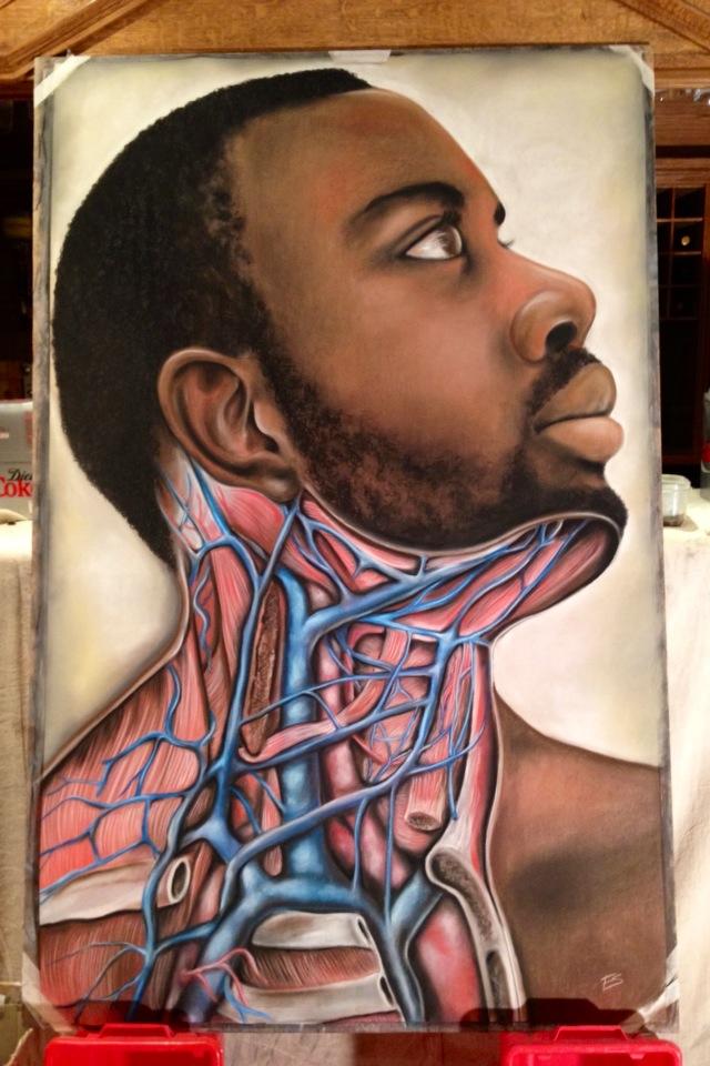 However, this eye for detail isn’t only skin-deep. Her anatomical drawings, inspired by her medical degree and the drawings of Leonardo Da Vinci, are proof that mixing business and pleasure can produce extraordinary results, as shown here in one of her submissions for A-level Art.