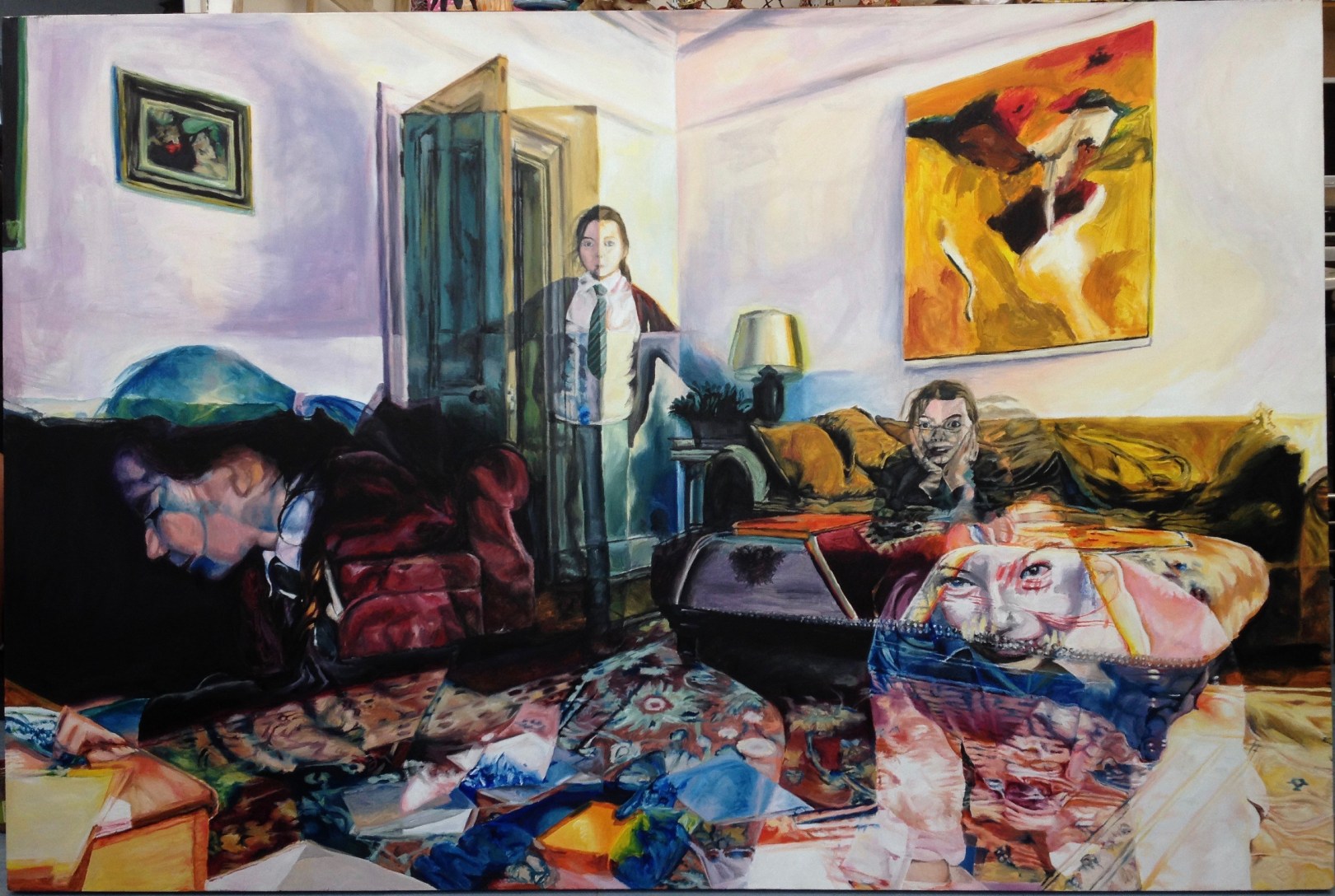 Eve Finnie’s oil painting, “Kitty and the TV”, was recently announced as the winner to Oriel College’s Gower Memorial Prize. She says, “This is a painting of my little sister (Kitty) doing various activities after school layered over each other from the point of view of the television, which was playing throughout the evening.” You can download a high-resolution photo of “Kitty and the TV” here: