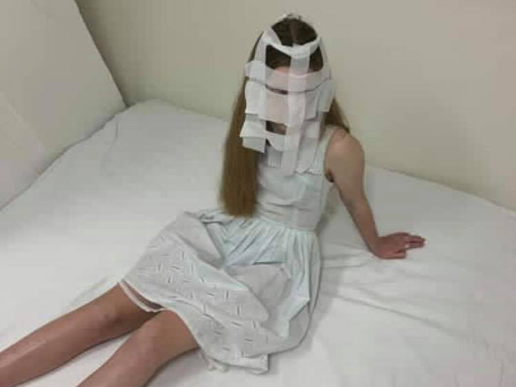 The most remarkable feature of the play, however, is the plot itself. The premise of a young woman so bound by society’s expectations of beauty that she mutilates her own face should serve as an example of just how much the script does not hold back. From the very start, and at several points during the play, I found myself genuinely disturbed at the scenes being played out. My notes were, at multiple times, just expletives of shock. However, the messages being discussed are not at all forced or ham-fisted, but graphically put in front of the audience for consideration. With a realistic depiction of sickening events slowly revealed as Isabelle is guided through her memories by Dr Guild, you are shown the problems instead of being asked the questions.