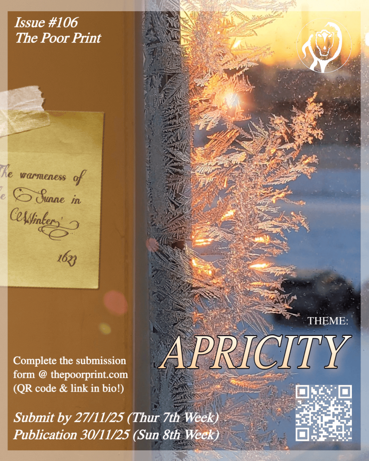 Each edition has a theme to stimulate submissions and a deadline for submissions: please see the poster for this term above. Feel free to interpret the themes however you like, or entirely disregard them if you prefer.