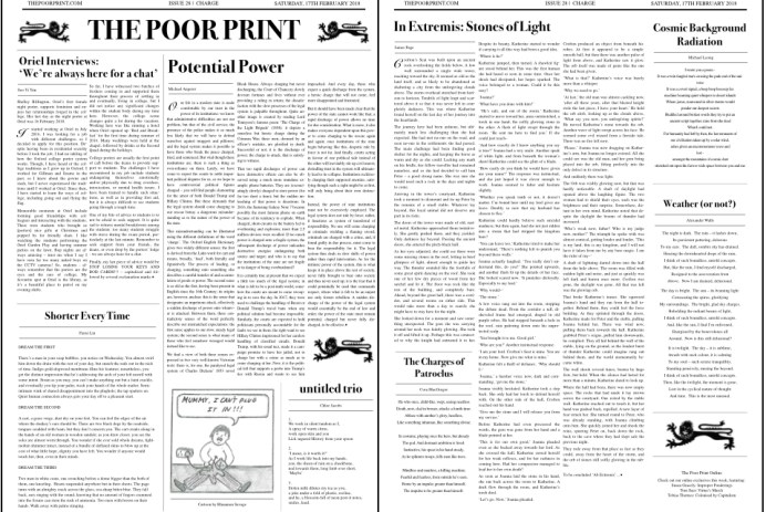 A pdf of the print version of Issue #28 – Charge – can be downloaded here: Issue #28 – Charge